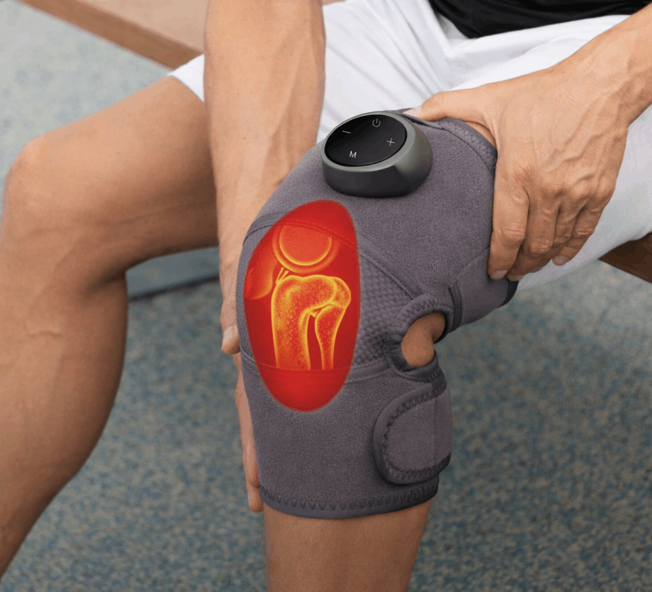 The Glokore Knee Massager uses a combination of therapeutic technologies to help relieve knee discomfort.